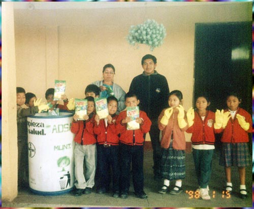 Analizando el agua de nacimientos los Chorritos, febrero 2009 Segunda Caravana Ecologica 2008 Publicacion de Valla en Tecpan Guatemala Entrega de arboles a las comunidades de Tecpan Guatemala 2007 Jornada de concientizacion del Ambiente por radios comunitarias 2006 Donacion de 500 arboles a Escuelas del Area Rural y Urbana, junio 2006 Jornada Ecologica 2006 Presentacion del Robot Basurero Donacion de Guantes a Escuela de Panimacoc y Escuela Miguel Garcia Granados 2005 Reforestando con la ayuda de la Escuela 25 de julio de 1524 Donacion de Toneles a Escuelas de Tecpan Guatemala, noviembre 2005 Seminario de Sistemas de Abonera